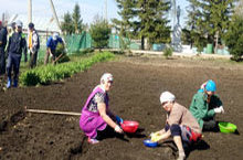 На пришкольном участке кипит работа по посадке овощных культур, цветов и деревьев. . -