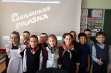 Учащиеся начальных классов посмотрели мультфильм «Солдатская сказка» - история про солдата Петра и его верного товарища жука-носорога в годы ВОВ по мотивам повести «Похождения жука-носорога» Константина Паустовского. -