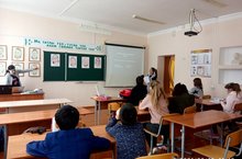 5 һәм 6 сыйныф укучыларына “Әдәби мозаика”- интеллектуаль уен электрон презентация күрсәтелде. Татар әдәбиятындагы язучыларның, шагыйрьләрнең тормыш юлларын, иҗатларын уен формасында искә алынды.