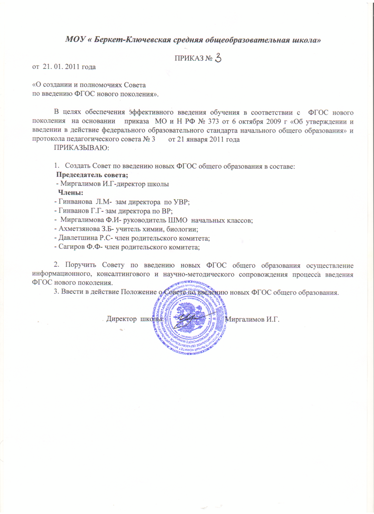 ⇒ Приказ о создании и полномочиях Совета по ведению ФГОС нового поколения