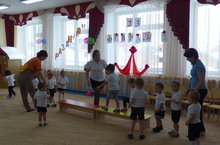 На праздник к малышам первой младшей группы прилетал в гости Карлсон и вместе с ними участвовал в праздничном развлечении по случаю Дня защитника Отечества