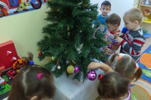 В целях проведения новогоднего торжества в детском саду педагоги совместно с родителями начали подготовку к празднику, слепили сказочных героев на участке, а также организовали конкурсы в каждой группе.