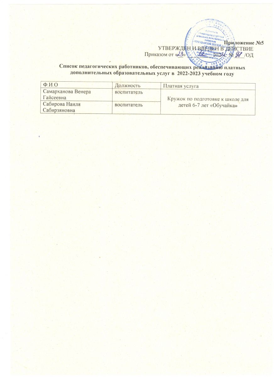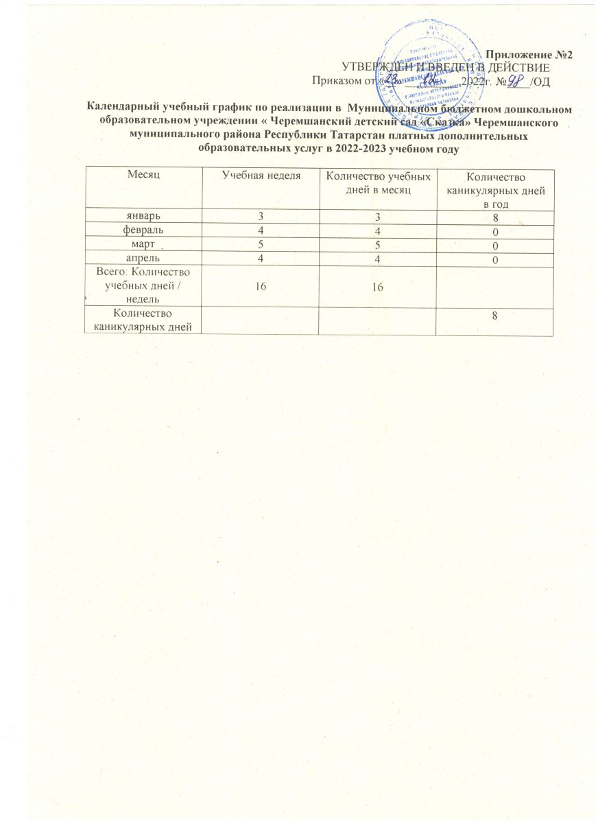 5. Календарный учебный график по реализации платных дополнительных образовательных услуг