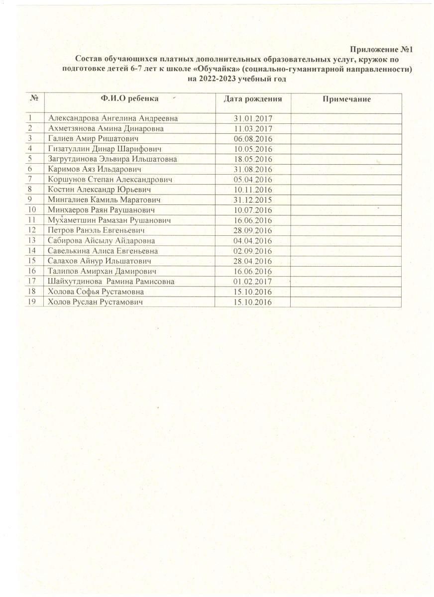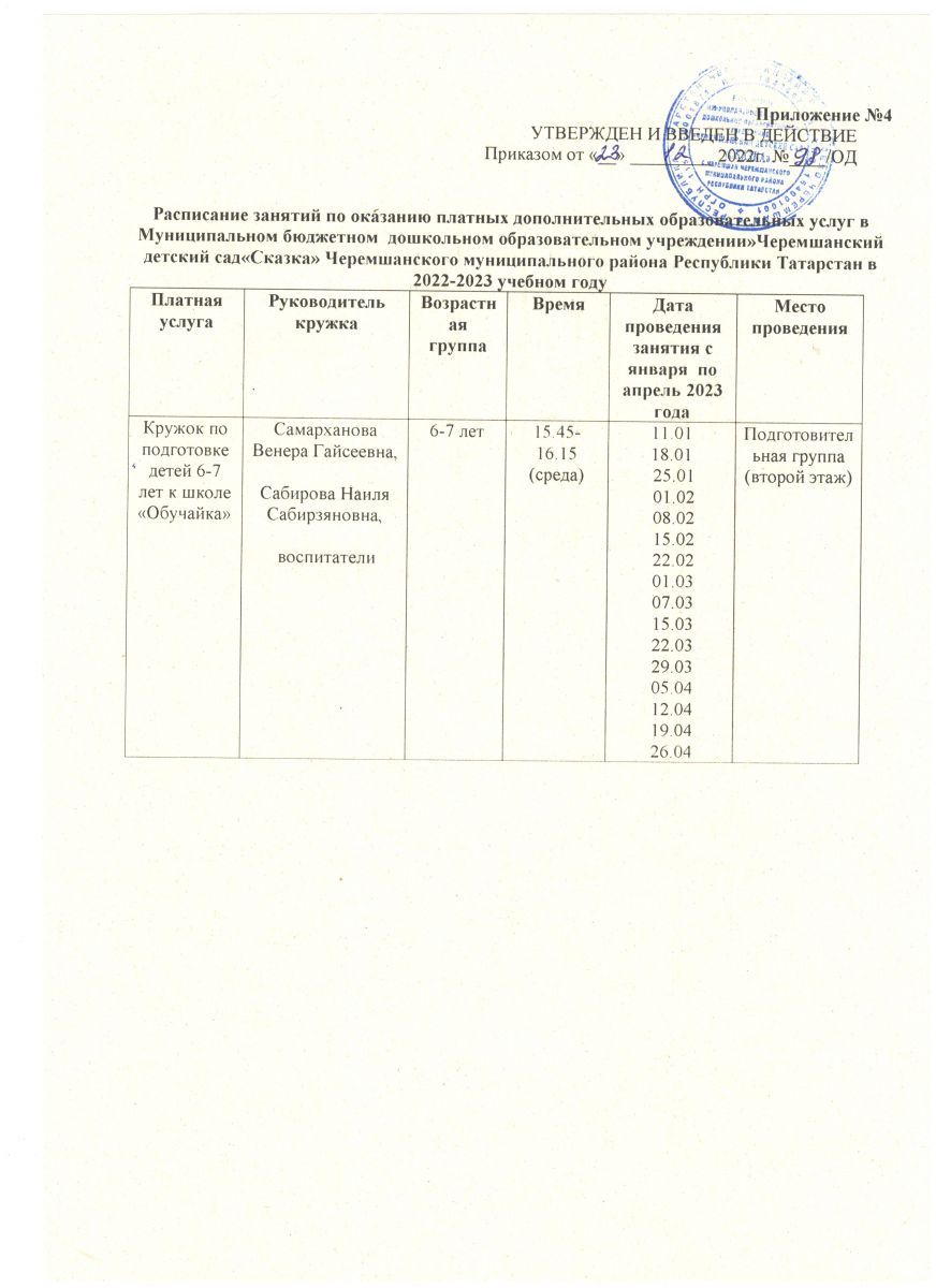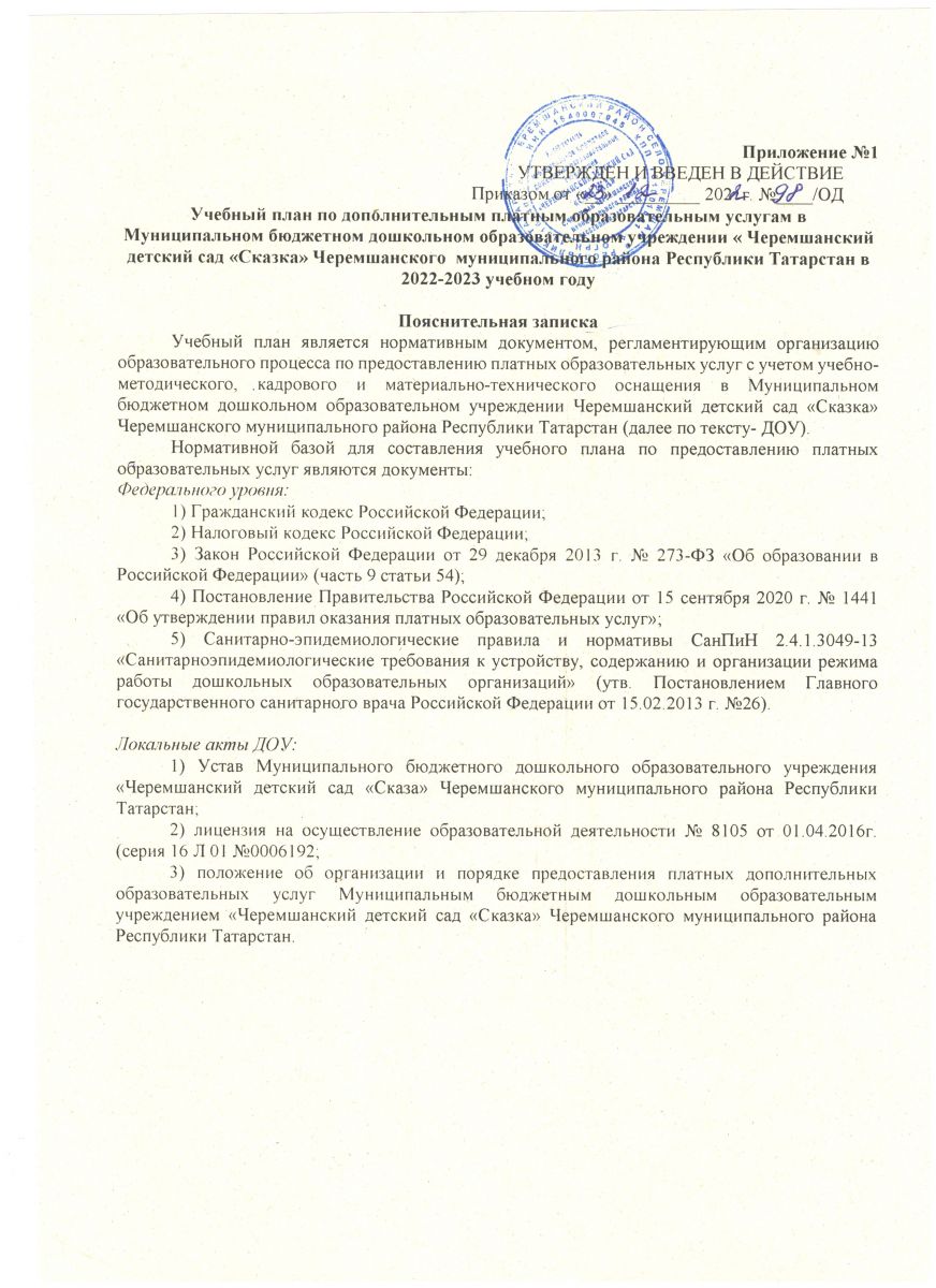 4. Учебный план по платным дополнительным образовательным услугам