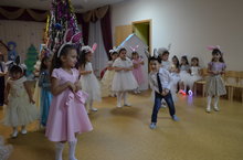 Открывать пору новогодних утренников доверили малышам из 1-й и 2-й групп раннего возраста а также ребятам старшей группы.