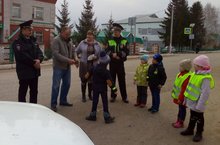 Воспитанники подготовительной к школе группы совместно с Госавтоинспекцией провели акцию с целью привлечения внимания водителей и пешеходов к использованию светоотражающих элементов в темное время суток.