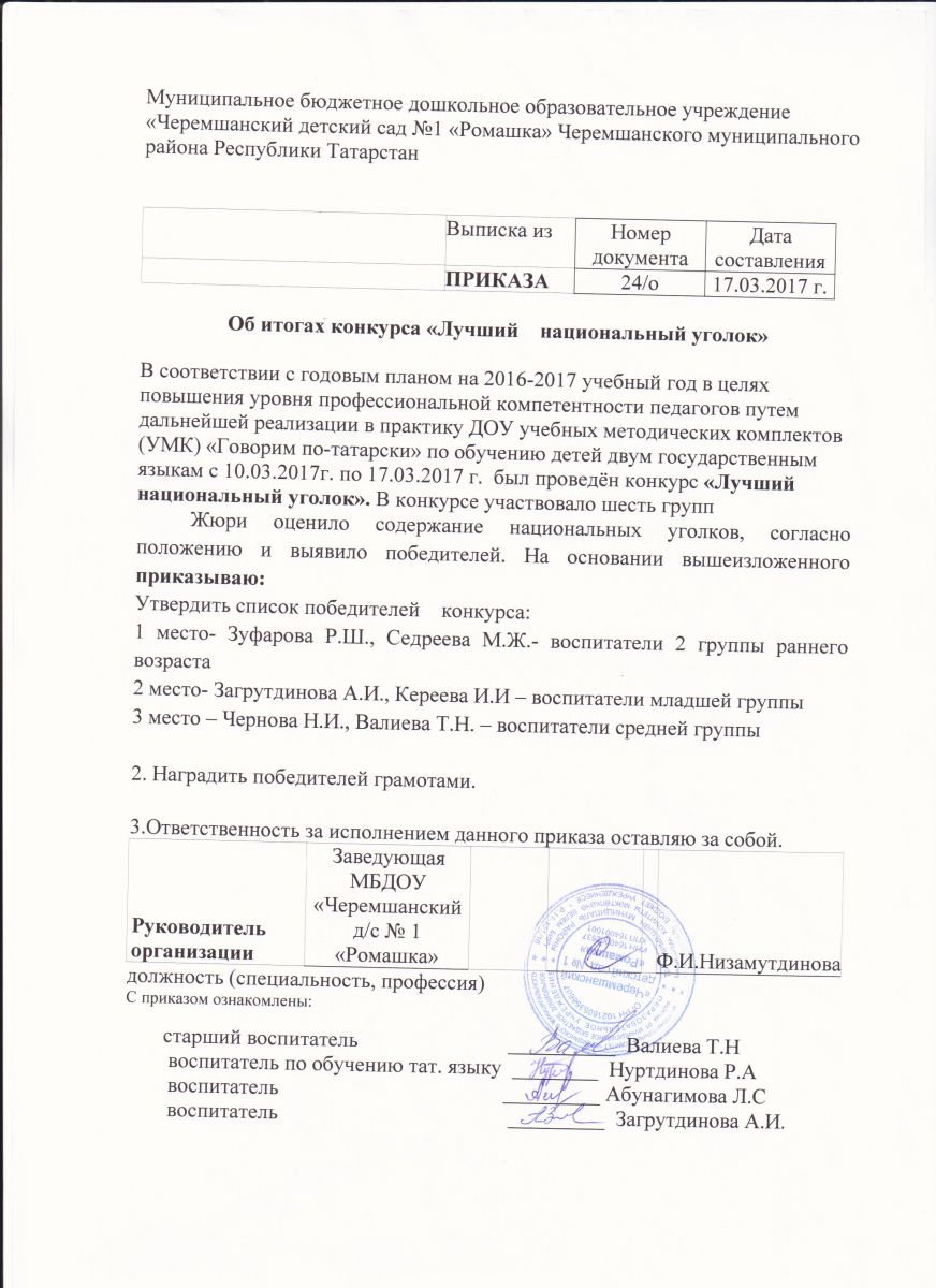Опубликовано: 17.03.2017Приказ об итогах конкурса "Лучший национальный уголок"