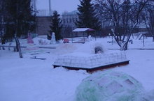 Коллектив тырышлыгы белән бакча территориясе буйлап төрле кар сыннары ясалды.