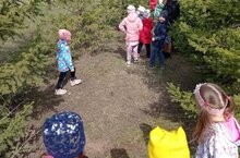 Продолжается экологическая акция. Дети сходили на экскурсию в еловый лесок. Они понаблюдали за насикомыми, слушали пение птиц, рассматривали пушистые зеленые ветви елей и их шишки, а так же весеннее лекарственное растение мать- и - мачеха.