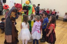Бүген уртанчылар һәм зурлар төркеменә Любимка исемле клоун көз көне туган көннәре булган балаларны бәйрәмнәре белән котларга килде.