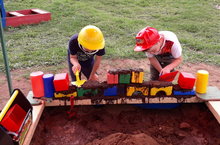 Кечкенә төзүчеләр 21.08.2019 Бүген малайлар кирпич салуда, комнан кечкенә йортлар төзү осталыгын күрсәттеләр. Сегодня мальчики показали свое мастерство в кладке кирпичей и строении песчаных домиков.