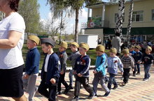 Балалар бакчасында Бөек Ватан сугышында жиңүгə 74 еллыгына багышланган тантаналы парад узды.