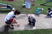 На физкультурном участке с детьми и родителями были проведены эстафеты на военную тему. Все дети проявили свою силу, ловкость, быстроту, внимание и умение дружить.