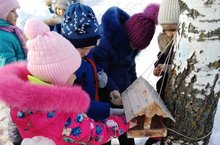 Безнең балалар бакчасында “Кошлар ашханәсе” ачылды. Уен мәйданчыкларында кошларның җим утлары куелды.