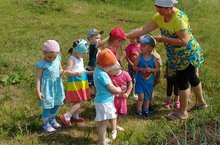 Кечкенәләр төркемендәге балалар бакчада ниләр үсүе белән таныштылар. Түтәлләрдә кишер, чөгендер,сарымсак, борчак, ташкабак үсә.