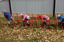 Вдруг сомкнулись мыслей кольца!Грабли,мётлы и вперёд!Веселей давай,народ!На субботнике в субботуМного сделаем работы!Всё покрасим,приберём,В вид достойный приведём! -
