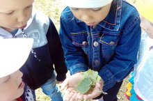 Сегодня на прогулке наблюдали за гусеницей. Дети с интересом рассматривали туловище гусеницы, ножки, пытались взять её в руки. В итоге гусеница заползла на листок и мы отпустили её в зелёную травку.