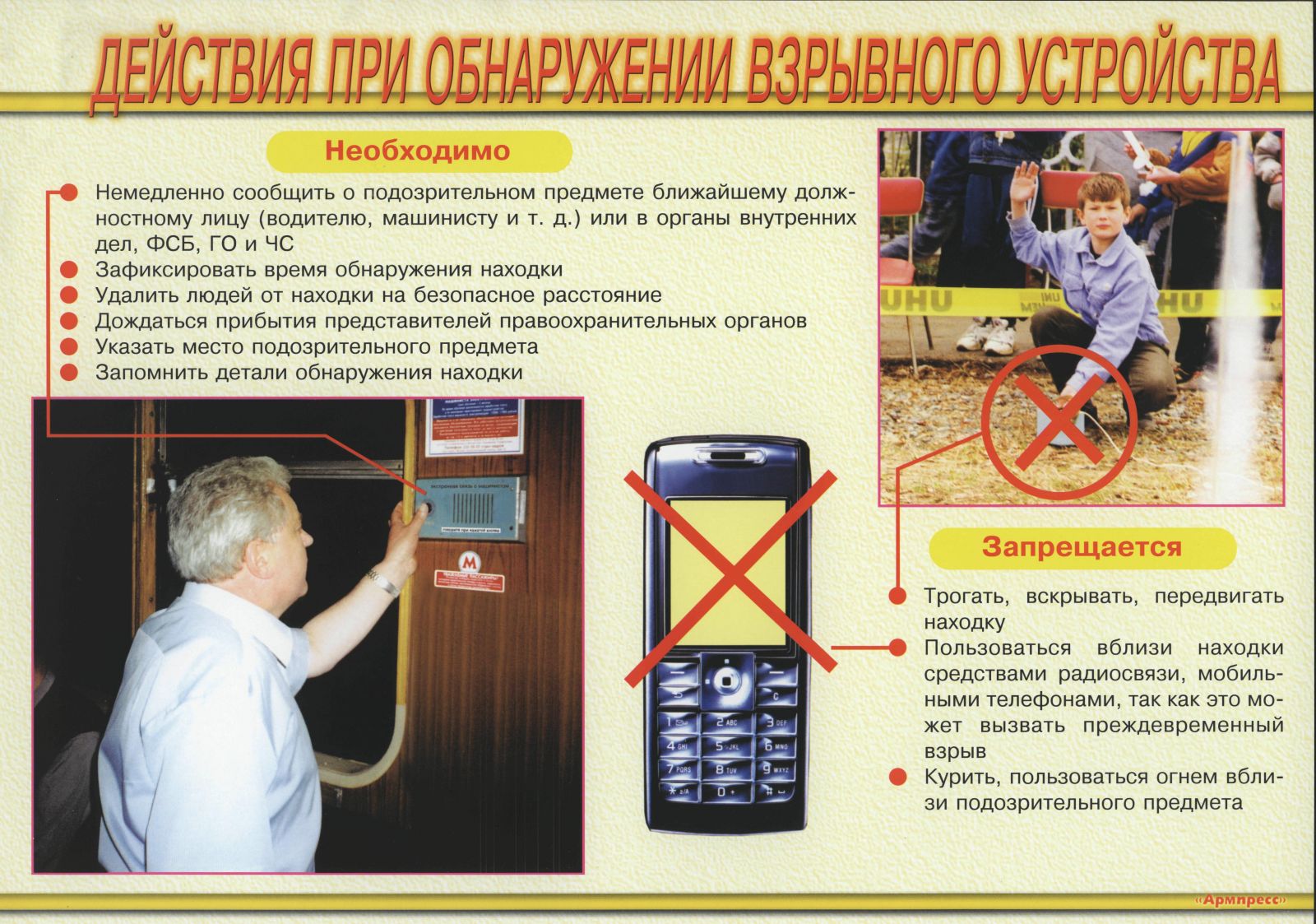 Рекомендации должностному лицу приобнаружении предмета , похожего на взрывоопасный