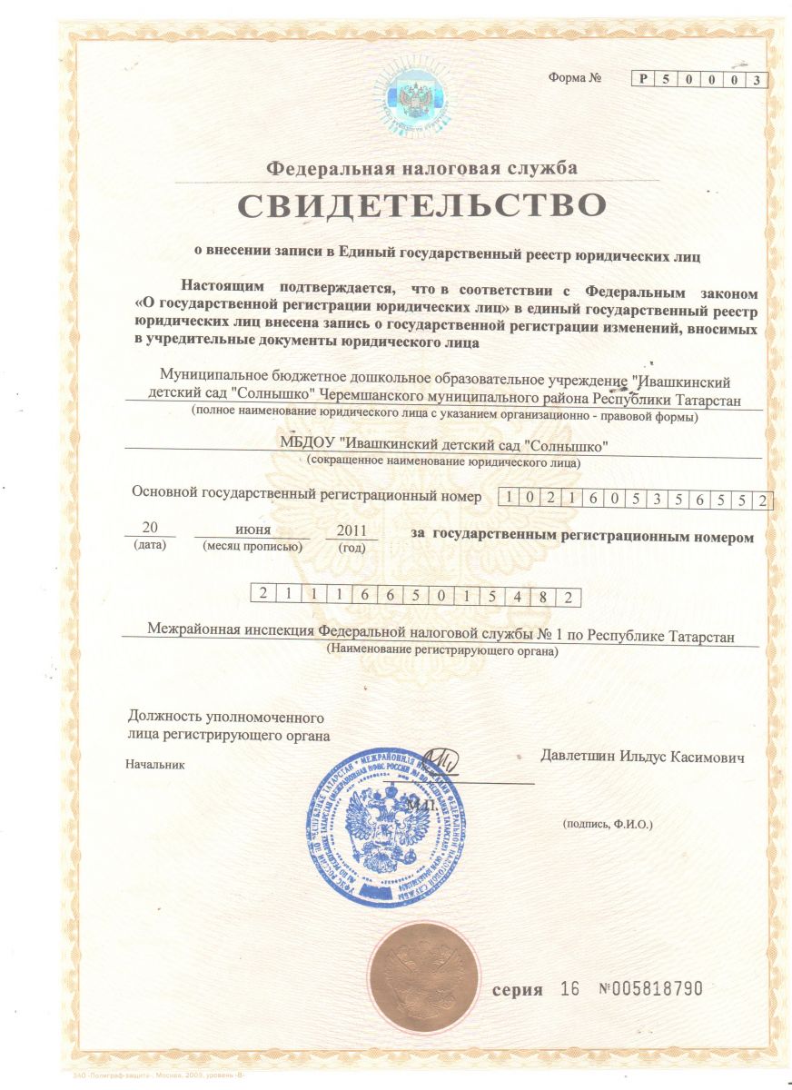 МБДОУ «Ивашкинский детский сад «Солнышко» Черемшанского муниципального района Республики Татарстан