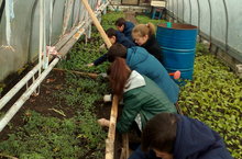 С потеплением погоды началась работа на пришкольном участке. Сегодня учащиеся побелили яблони в саду, участок которого составляет 26 соток.