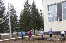 Сегодня учащиеся и учителя нашей школы вышли на субботник.