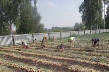 В нашей школе поспел лук. Лук вырастили на 7 сотках.