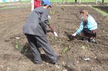 6-7 мая в МБОУ "Ивашкинская СОШ" были посажены на пришкольном участке овощные культуры. Вокруг школы, в цветочном отделе, из заранее приготовленных цветочных рассад был оформлен дизайн в форме гергиевской ленты и звезды победы.