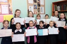 Ученики 1-11 классов старались и отвечали на такие вопросы: "Что такое каллиграфия?", "как писать с красной строки?", "Почему выделяем абзацы?".