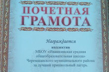 24 августа 2018 года состоялась ежегодная августовская конференция работников образования. Ивашкинская средняя школа награждена Почетной грамотой МКУ "Отдел образования" и сертификатом на 5000 рублей за лучший пришкольный лагерь.