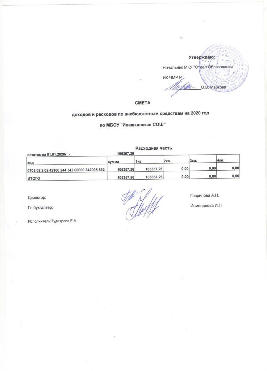 Смета доходов и расходов по внебюджетным средствам на 2020 год
