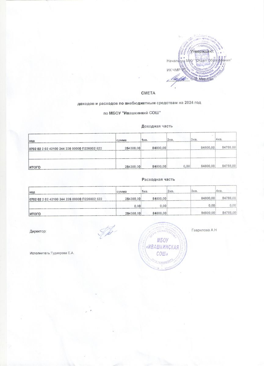 Смета доходов и расходов по внебюджетным средствам на 2024 год