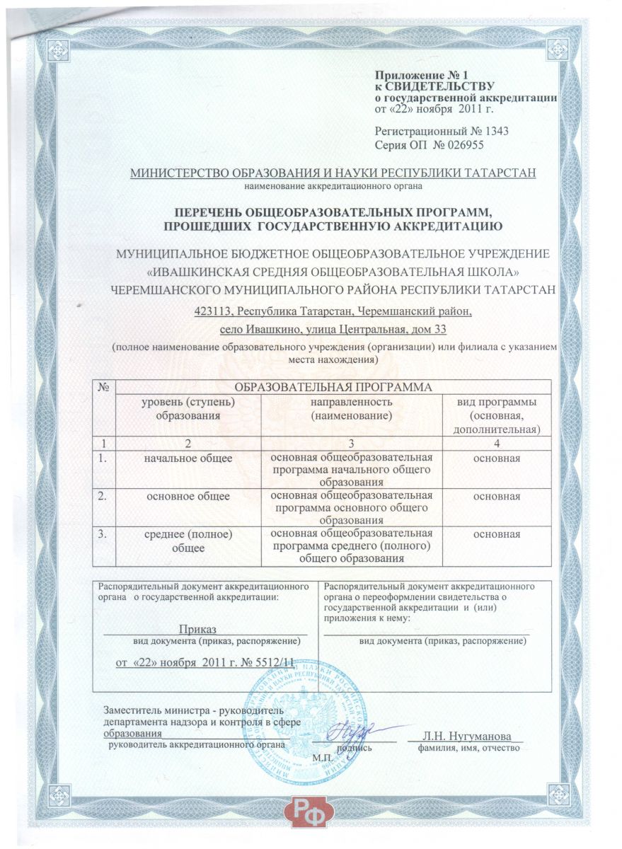 Муниципальное бюджетное общеобразовательное учреждение «Ивашкинская средняя общеобразовательная школа» Черемшанского муниципального района Республики Татарстан