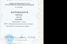 Учащийся 11 класса Миронов Эдуард стал призером Регионалного этапе Всероссийской олимпиады школьников по географии и наргажден дипломом. Поздравляем Эдуарда с победой и желаем дальнейших успехов.
