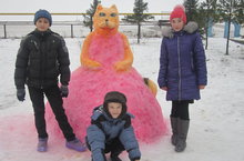 Яңа елны каршылап. укучылар мәктәп каршында кардан төрле сыннар ясадылар.