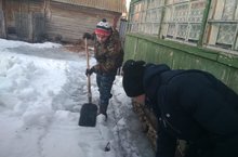 Старшеклассники шевствуют над Бадрутдиновой Фардией, проживающей в поселке Яшауче. Фардия апа перенесла все тяготы военного времени, всю жизнь трудилась в колхозе во благо страны. Она очень благодарна детям за посильную помощь.
