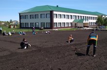 Яз җитү белән мәктәп яны участогында эш кайный башлый.Укучы балалар җирне эшкәртәләр, түтәлләр ясыйлар. Яшелчәләр, чәчәкләр утырталар. 16 нчы май көнне мәктәп бакчасында 5 нче һәм 10 нчы сыйныф укучылары һәм укытучылар бик тырышып эшләде.
