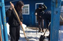 Тимуровцы 8 класса расчистили снег во дворе и около дома Кадрии Исхаковой .