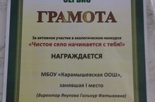 "Чиста авыл синнән башлана" дигән конкурста мәктәбебез 1 нче урынны яулады.