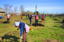 "Изгелек атнасы" кысаларында мәктәп укучылары һәм укытучылары көче белән мәктәп яны участогына алмагач үсентеләре утыртылды.