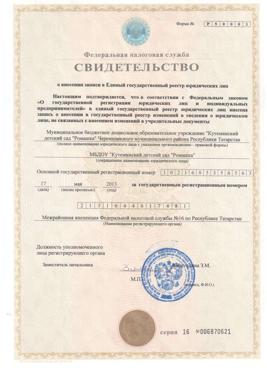 Короткое название: МБДОУ "Кутеминский детский сад "Ромашка"