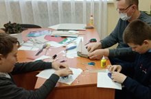 Руководитель кружка "Судомоделист" , Уляшкин А.И. вместе с воспитанниками, изготавливают модель катера.