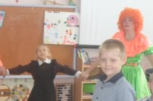 В гости к первоклассникам и воспитанникам детского сада "Ромашка" приехали клоуны Миша и Ириша.
