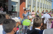 Тәрбияче Гөлия Әхмәтовна мәктәптә үткән белем бәйрәмендә чыгыш ясады.