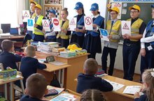 Сегодня ребята встретились с самыми маленькими учащимися – нашими первоклассниками. Юные инспекторы движения напомнили им о правилах дорожного движения, рассказали о том, что и они являются участниками дорожного движения и что обязаны соблюдать все правила.
