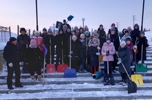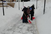 Её целью была уборка снега на территории ДИПИ . Дети вооружились лопатами и быстро расчистили все дорожки.