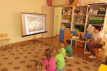12 апреля-День космонавтики. В связи с этим ребятам была предложена презентация. Дети познакомились с Солнечной системой, летавшими в космос собаками по кличкам Белка и Стрелка, первым космонавтом - Юрием Гагариным и другими интересными фактами. Ко Дню космонавтики организовали выставку рисунков.