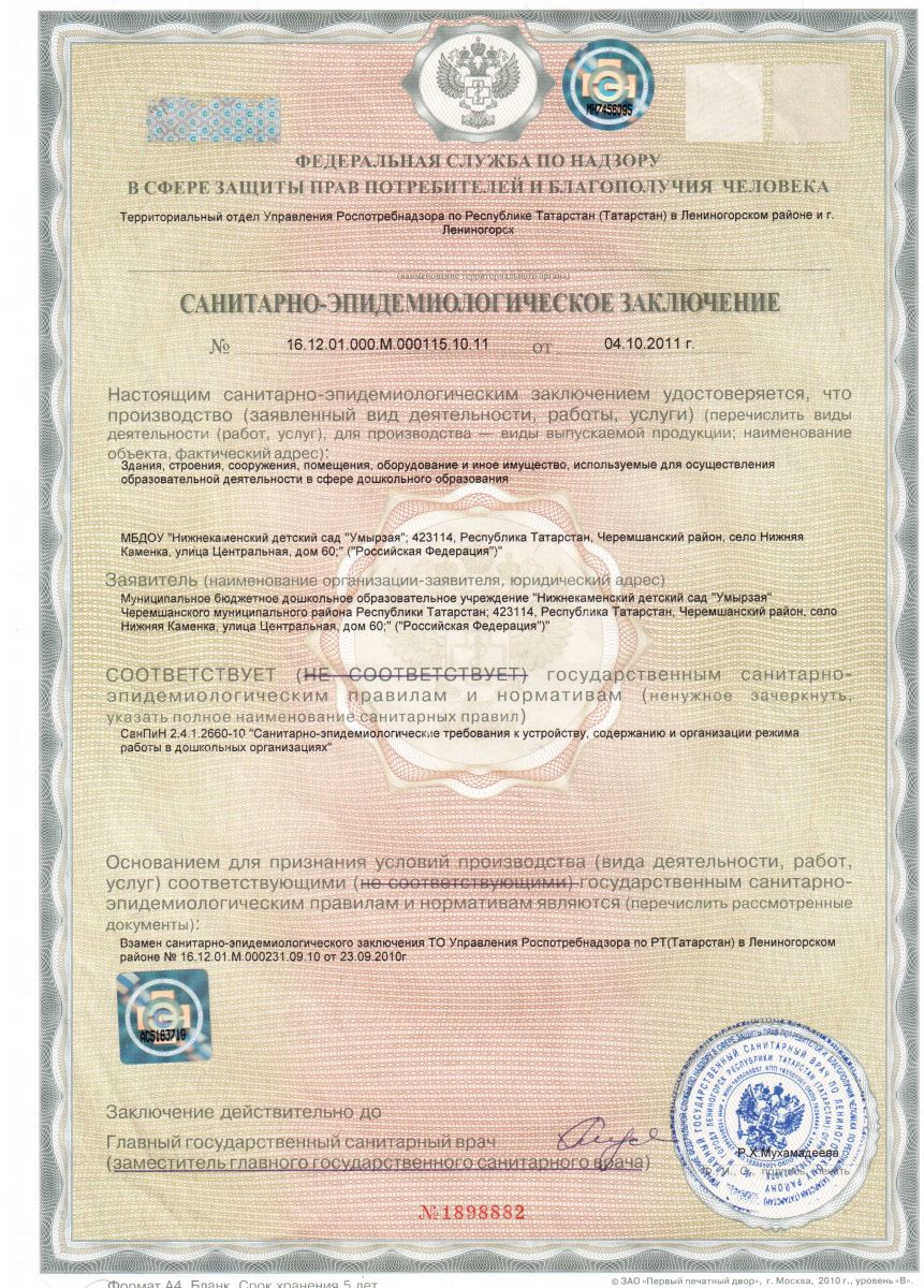 Муниципальное бюджетное дошкольное образовательное учреждение «Нижнекаменский детский сад «Умырзая» Черемшанского муниципального района Республики Татарстан