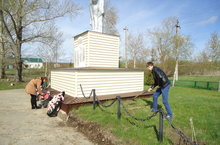 Учащиеся 8 класса с учителем технологии Ваничковой Т.М. очистили территорию вокруг мемориала погибшим односельчанам.