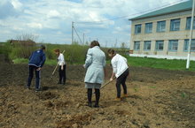 Продолжается работа на пришкольном участке. Для учащихся это своего рода «азбука» земли.