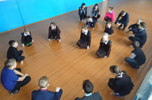 Һәр иртәге уку көнен укучыларыбыз гимнастика ясау белән башлап җибәрә. Бүген исә күнегүләребез гадәти генә булмады. Ул акциябезнең эмблемасын флешмоб стилендә башкару булды.